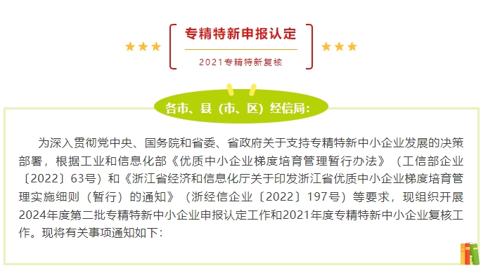 專精特新申報認(rèn)定2021專精特新復(fù)核各市、縣(市、區(qū))經(jīng)信局: 為深入貫徹黨中央、國務(wù)院和省委、省政府關(guān)于支持專精特新中小企業(yè)發(fā)展的決策部署,根據(jù)工...