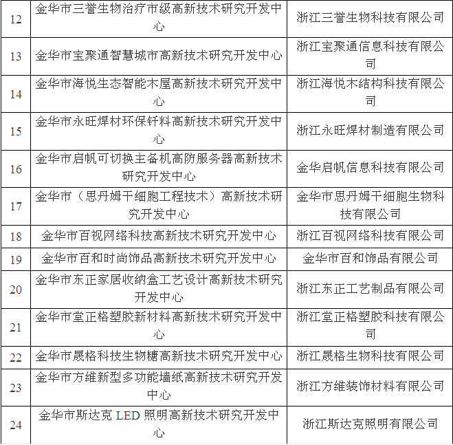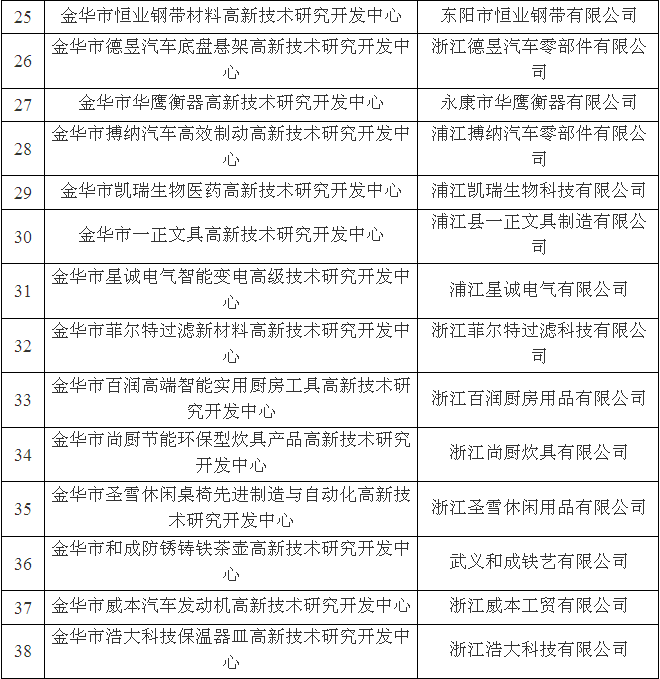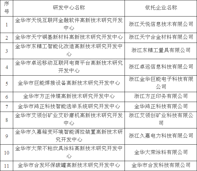 附件:金華市級(jí)高新技術(shù)研究開發(fā)中心名單