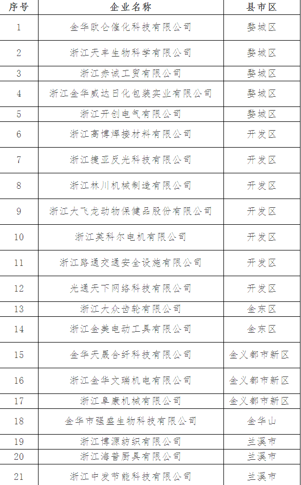 根據(jù)《金華市專利示范企業(yè)認定與管理辦法》(金政發(fā)〔2004〕132號,金政發(fā)〔2008〕70號修改)文件精神,在各縣(市、區(qū))科技管理部門推薦的基礎(chǔ)上,經(jīng)材料審查、專家評審,擬認定金華歐侖催化科技有限公司等65家企業(yè)為2018年金華市專利示范企業(yè),現(xiàn)予公示,接受社會監(jiān)督,公示期從2018年4月3日至9日止。如有異議,請來人來電反映。