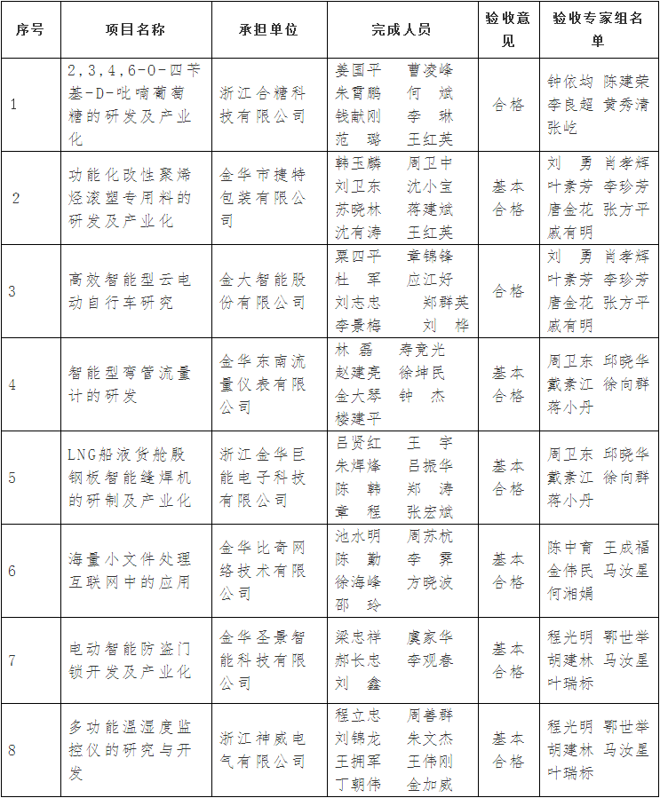 金華市級(jí)科技計(jì)劃項(xiàng)目驗(yàn)收結(jié)果公示清單