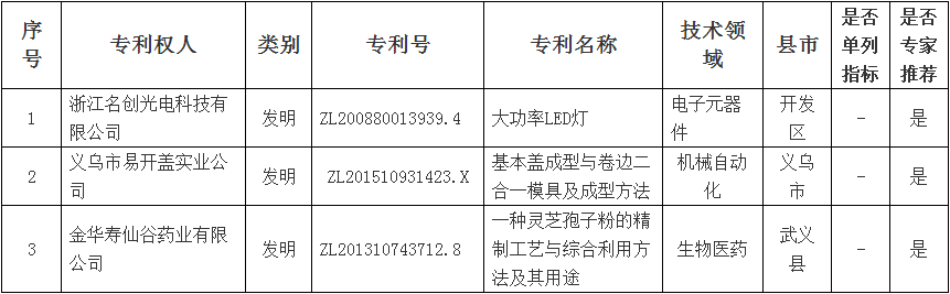 2018年浙江省專(zhuān)利獎(jiǎng)金華市擬推薦項(xiàng)目名單(第二批)