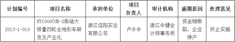 根據(jù)《金華市級(jí)科技計(jì)劃項(xiàng)目驗(yàn)收管理辦法》(金市科字〔2015〕83號(hào))相關(guān)規(guī)定,經(jīng)研究,我局?jǐn)M對(duì)浙江信陽(yáng)實(shí)業(yè)有限公司承擔(dān)的市級(jí)科技計(jì)劃項(xiàng)目“XY1000CUE-2柴油大排量四輪全地形車(chē)研發(fā)及產(chǎn)業(yè)化”(計(jì)劃編號(hào):2013-1-010)進(jìn)行終止處理,對(duì)項(xiàng)目負(fù)責(zé)人和主要股東記錄不良科研信用?,F(xiàn)予以公示,自公示之日起5個(gè)工作日內(nèi),有關(guān)單位或個(gè)人如有異議,應(yīng)當(dāng)以實(shí)名與我局聯(lián)系。聯(lián)系方式:金華市科技局工業(yè)與高新技術(shù)處,電話(huà):82469791;市紀(jì)委駐市科技局紀(jì)檢監(jiān)察組,電話(huà):82387952。