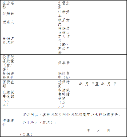 2018年浙江省首臺(套)重大技術(shù)裝備保費補貼申請表