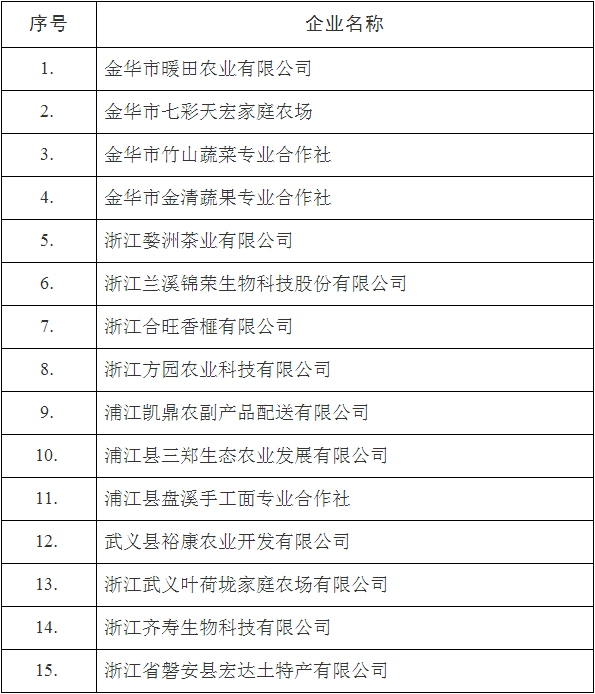 2018年度金華市農(nóng)業(yè)科技企業(yè)名單