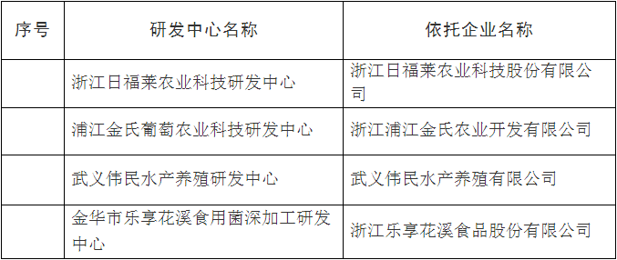 根據(jù)《關(guān)于深入實施創(chuàng)新驅(qū)動發(fā)展戰(zhàn)略大力推進大眾創(chuàng)業(yè)萬眾創(chuàng)新的若干意見》(金政發(fā)〔2016〕14號)和《金華市農(nóng)業(yè)科技研究開發(fā)中心管理辦法》(金市科〔2009〕24號)等文件精神,在各縣(市、區(qū))科技局推薦的基礎(chǔ)上,通過初審、實地核查、專家評審和公示等程序,經(jīng)研究,認定“浙江日福萊農(nóng)業(yè)科技股份有限公司”等4家企業(yè)組建的研發(fā)中心為金華市農(nóng)業(yè)科技研究開發(fā)中心,現(xiàn)予公布。