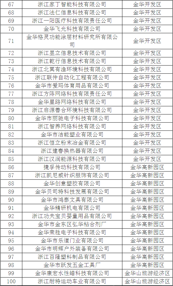 2018年金華市第三批浙江省科技型中小企業(yè)擬認定名單
