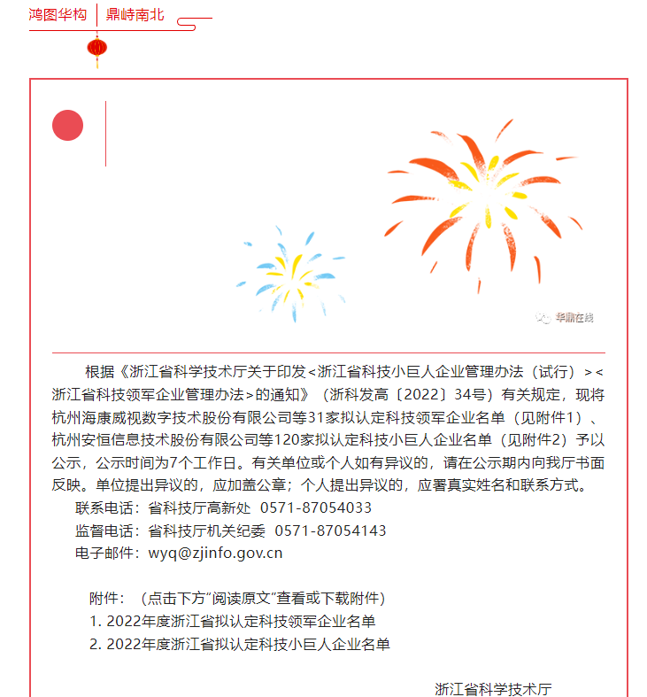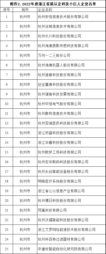 關(guān)于2022年度浙江省擬認(rèn)定科技領(lǐng)軍企業(yè)、科技小巨人企業(yè)名單的公示