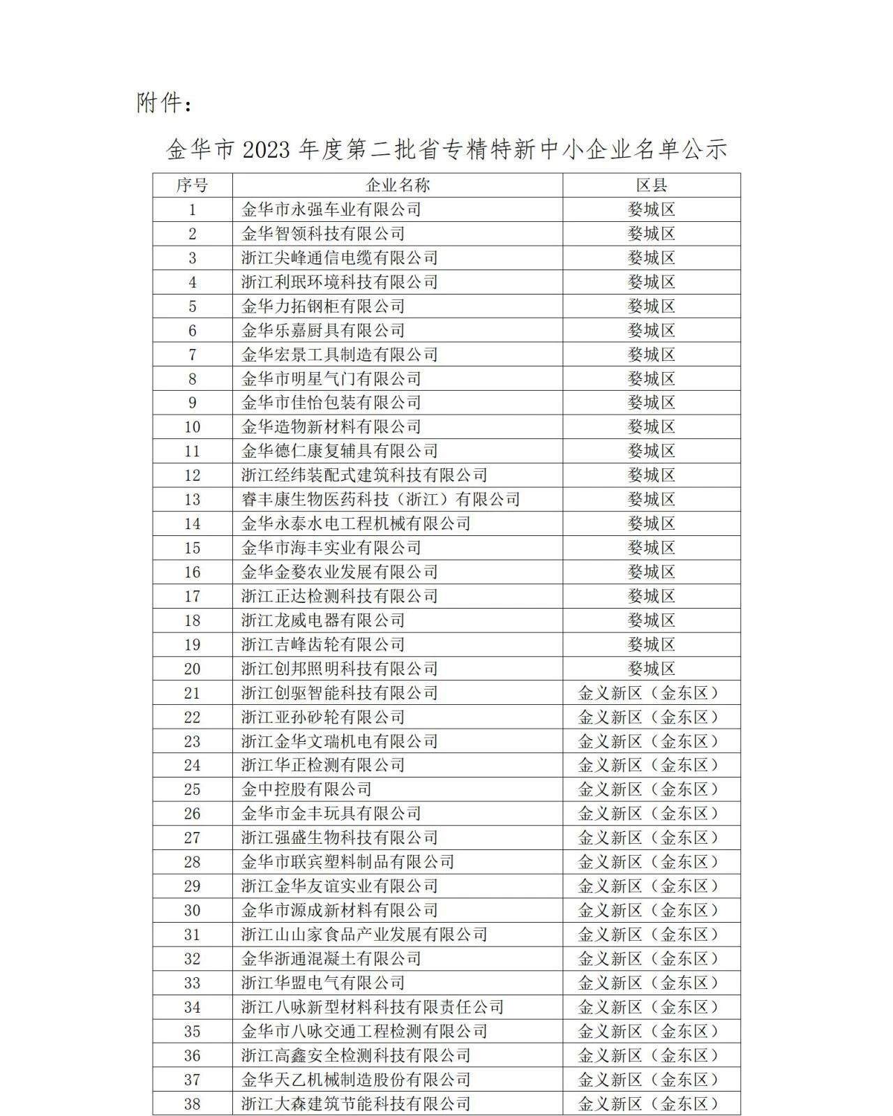 附件:金華市2023年度第二批省專(zhuān)精特新中小企業(yè)名單公示